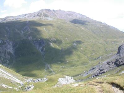 Nur noch der Wanderweg windet sich durch die immer kahler werdende Berglandschaft.
