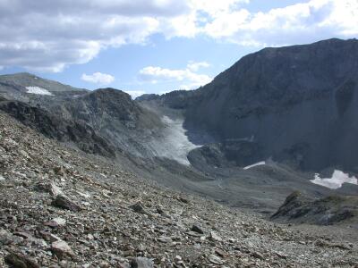 Links die klglichen berreste des Gletschers der wohl bis vor wenigen Jahrzehnten