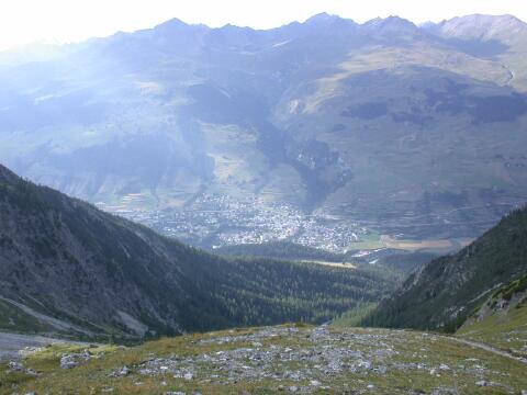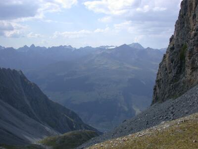 Links Blick nach oben, rechts nach unten. Scuol ist schon fast wieder zu erkennen.