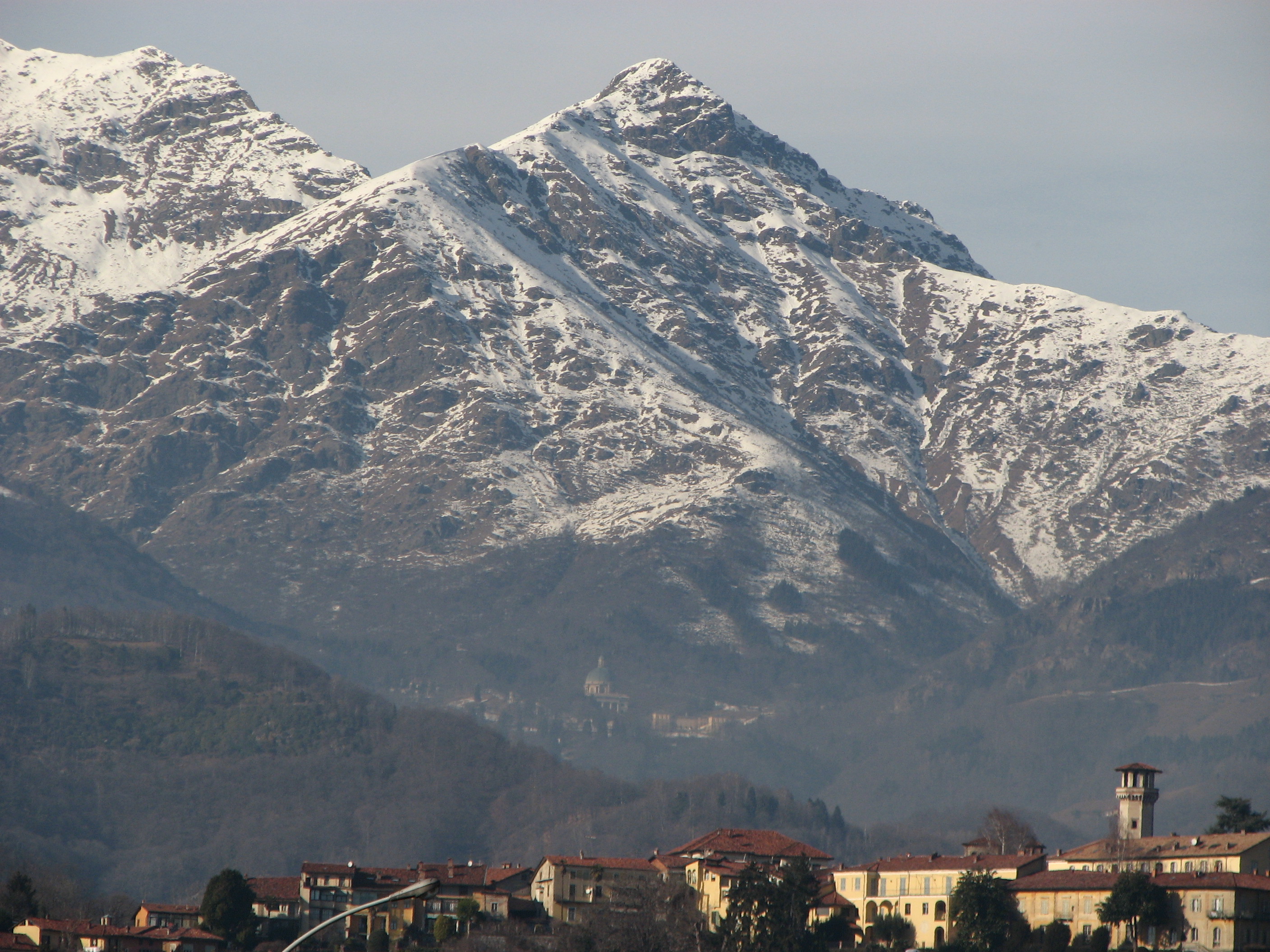 Bei klarer Sicht und mit etwas Zoom kann man das Kloster Oropa von Biella aus gut erkennen.