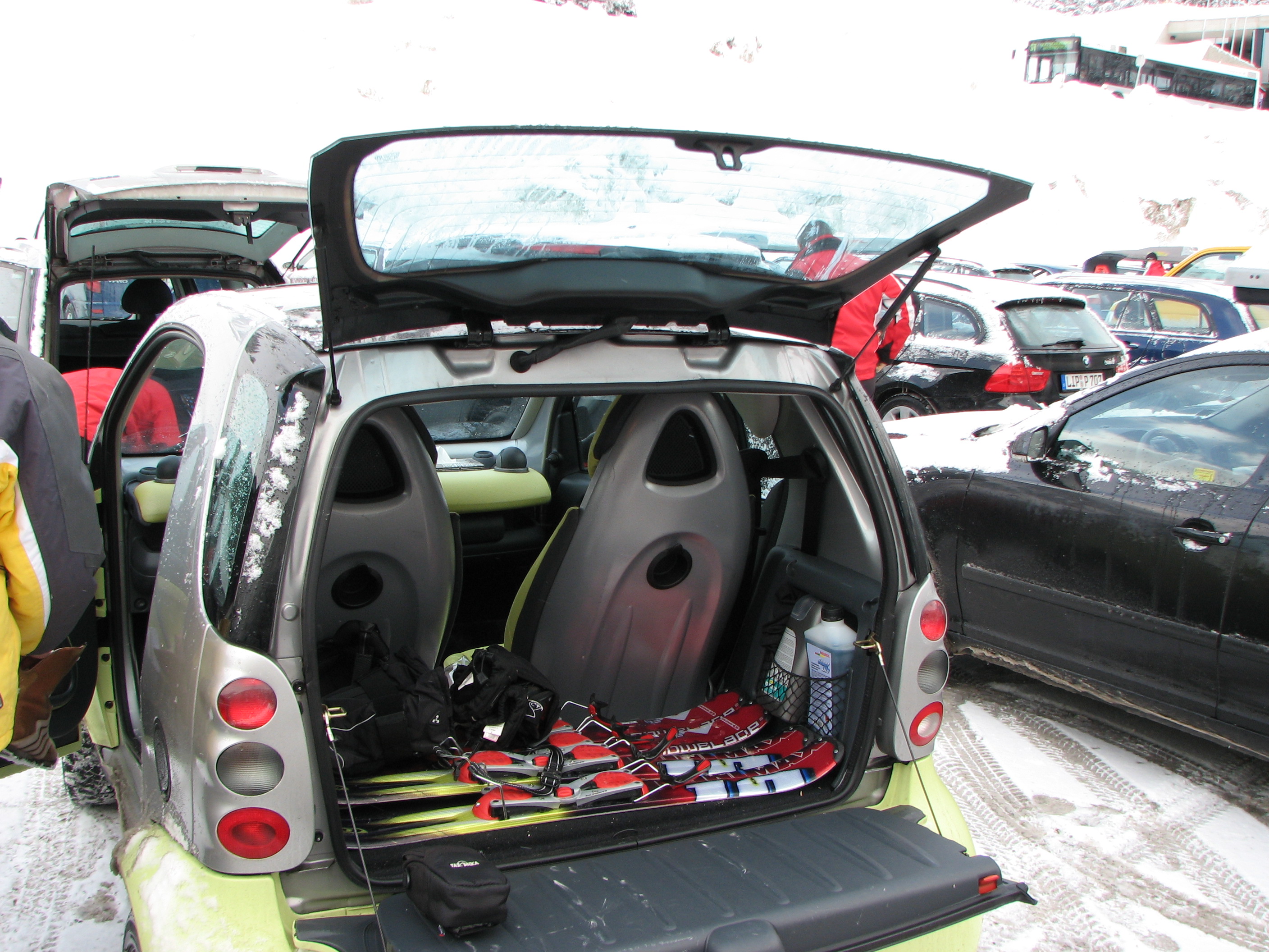 Und mit einem Schlag wurde mir klar, warum die Ladefläche vom Smart genau 90cm breit ist: Damit unsere Snowblades reinpassen natürlich! Und auch diese Ferien gingen Unfallfrei über die Bühne. Das lag sicher auch an den wirklich wichtigen Schildern... ;-) |