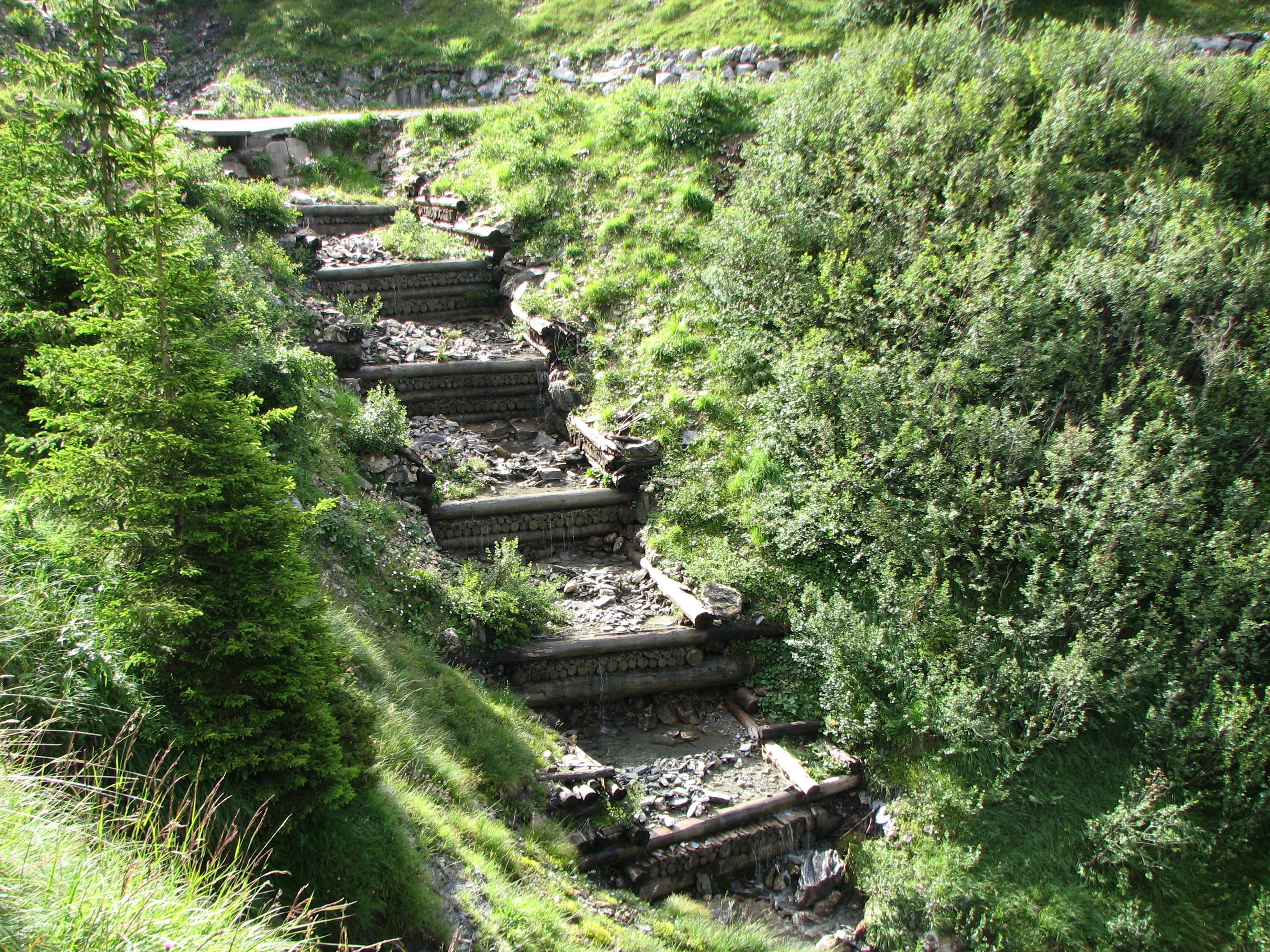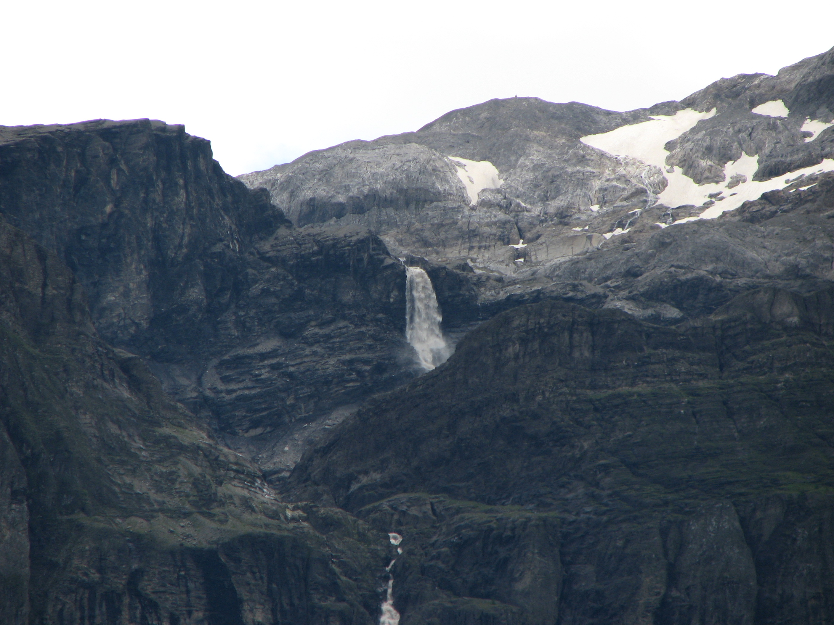 Oben eine Tele-Aufnahme der Lenker-Fälle - geannt "Bi de Sibe Brünne".